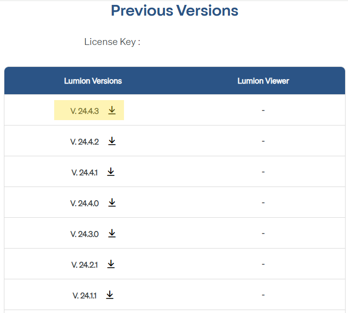 5.4:  If the version you require is not listed then see Section 6 Getting an old version of Lumion.