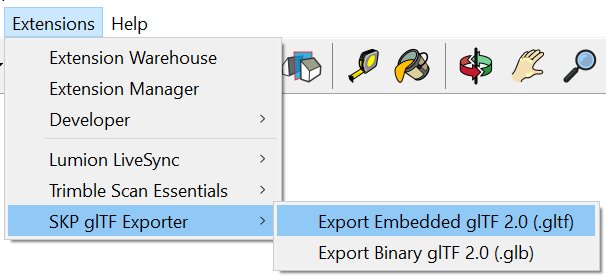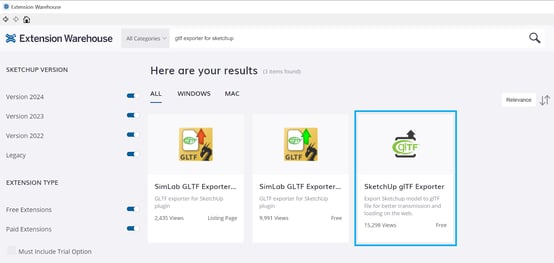 2.2.1 Install the SketchUp glTF Exporter from the Extension Warehouse:
