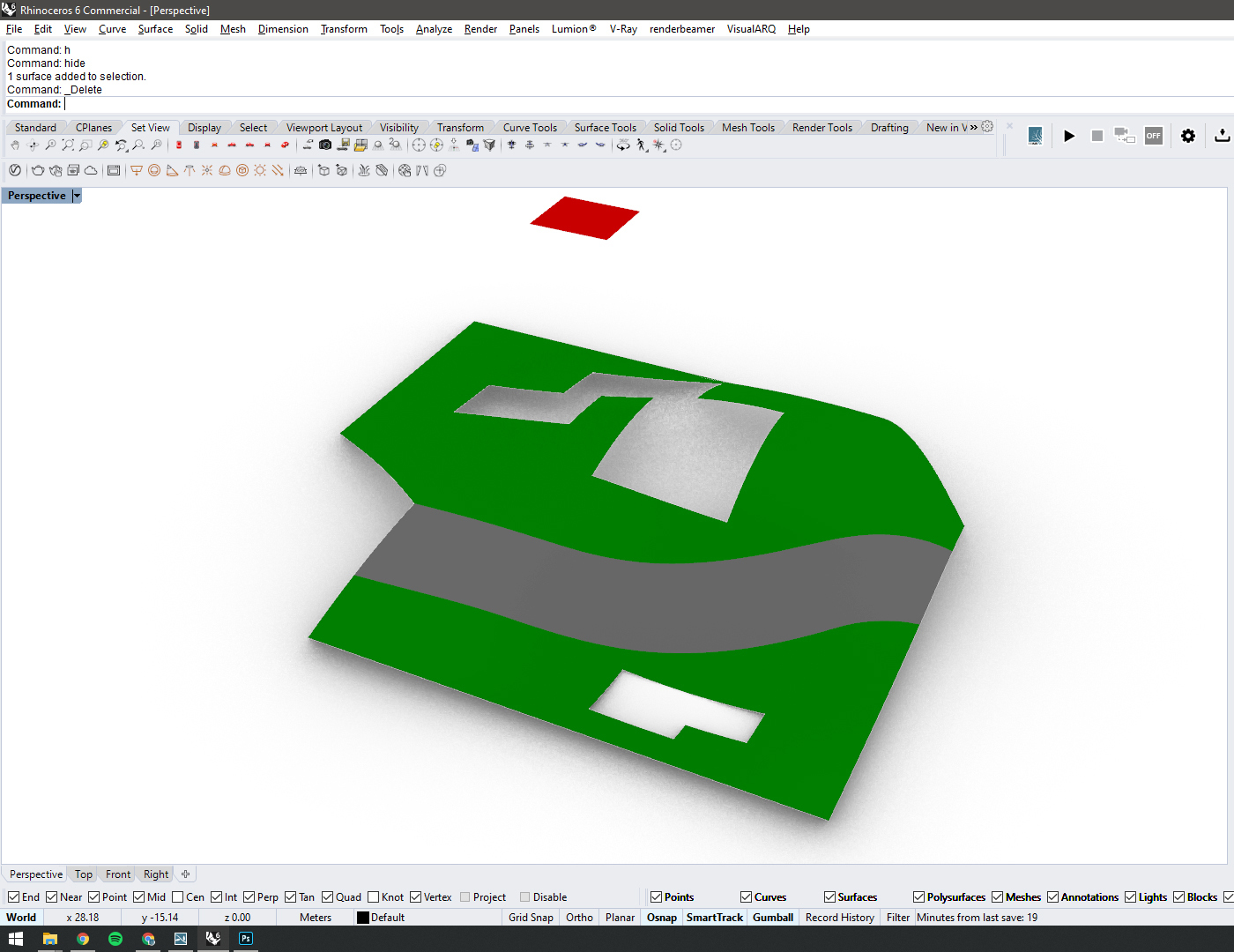 Please note that all exported models should share the same location relative to the World Origin as they are placed 'Master Model' and should also be positioned in the same spot in Lumion. Now they should align perfectly. As a safety net, you can create a 'marker' (the small red square in the screenshots) for each exported model and double-check if the models are perfectly aligned in the final step.