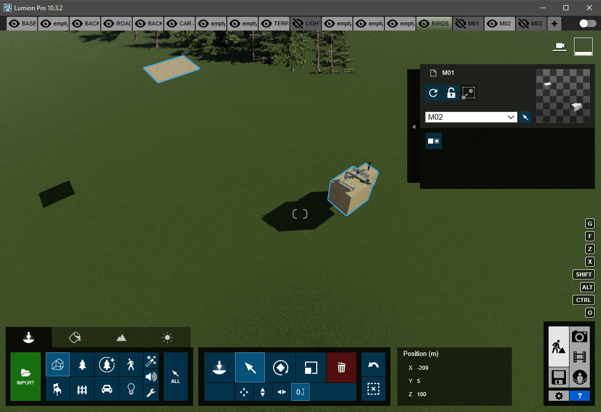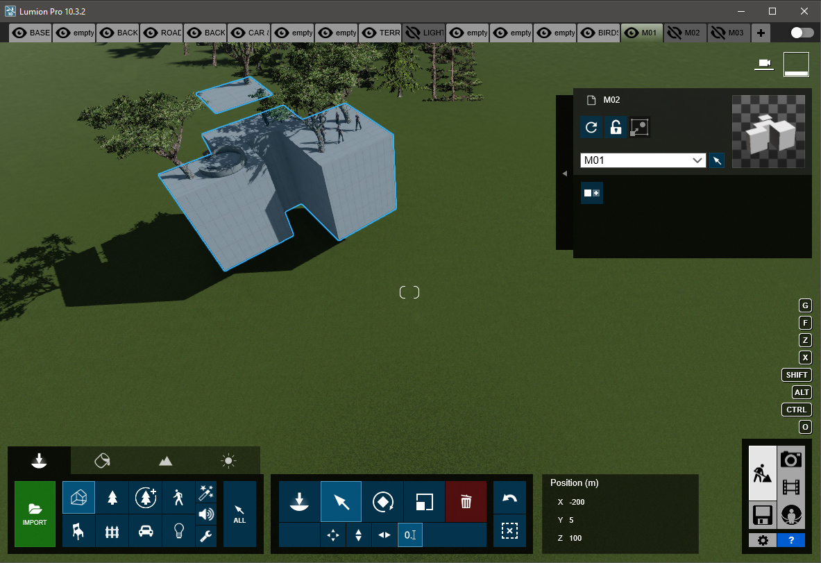 Note that all the model coordinates in the screenshots below are the same (X: -200, Y: 10, Z: 100). Of course, you can set your preferred position for your project.