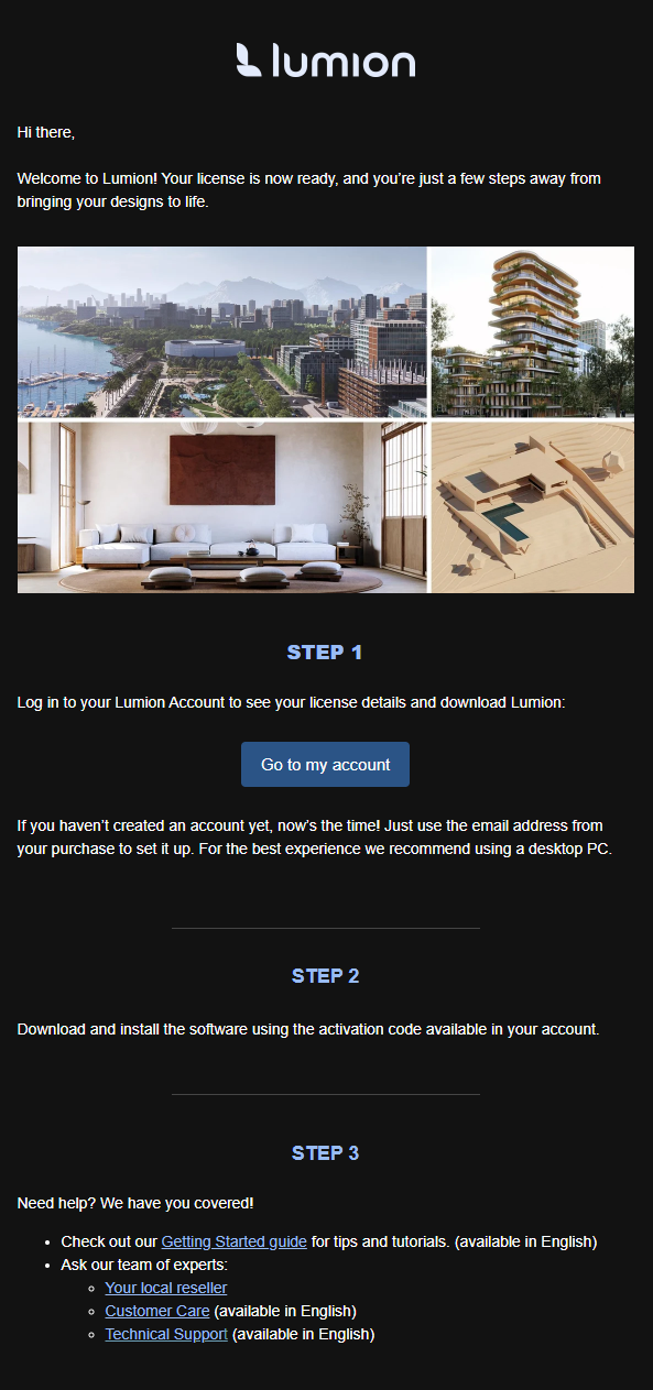 - Knowledge Base: How do you get the email with the Lumion download link?