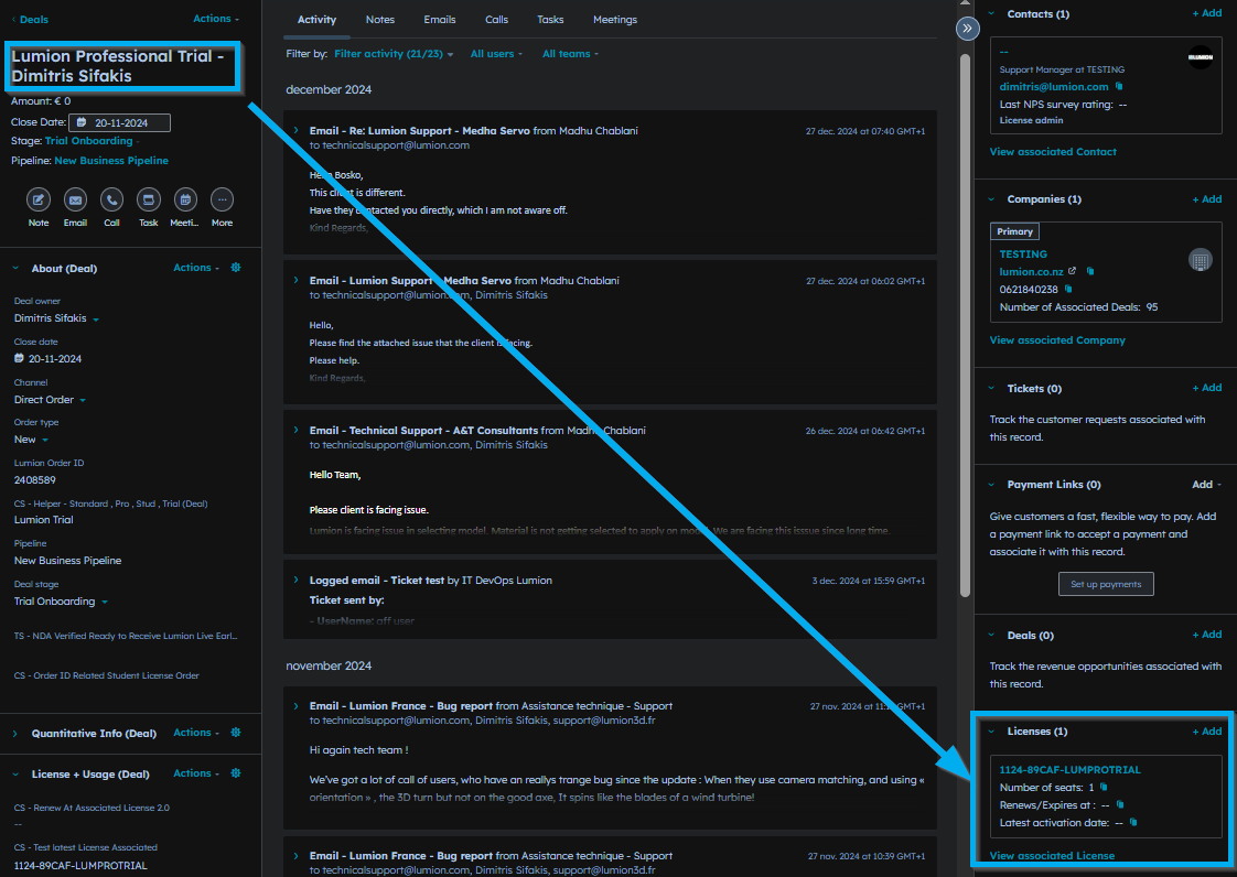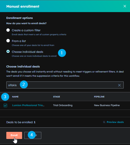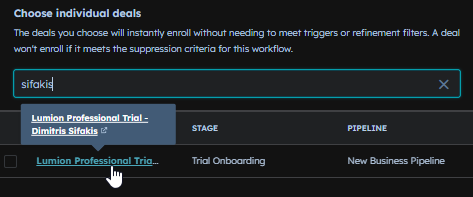 3.6: Choose the deal associated with the contact that was created at the moment of purchase.