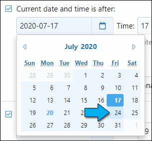 2.4 Click on the following Friday for the ‘after’ calendar setting and on the following Monday for the ‘before’ calendar setting: