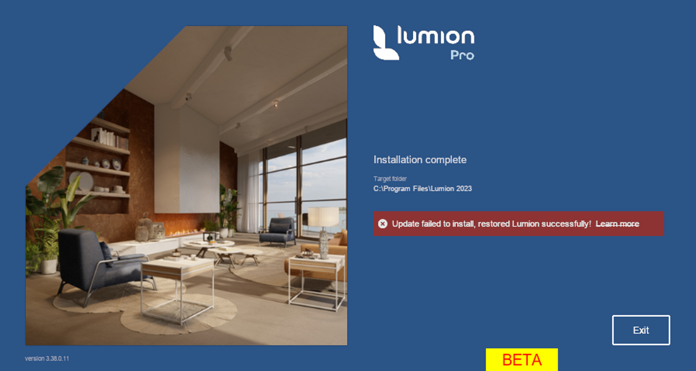 Restored Lumion failed: