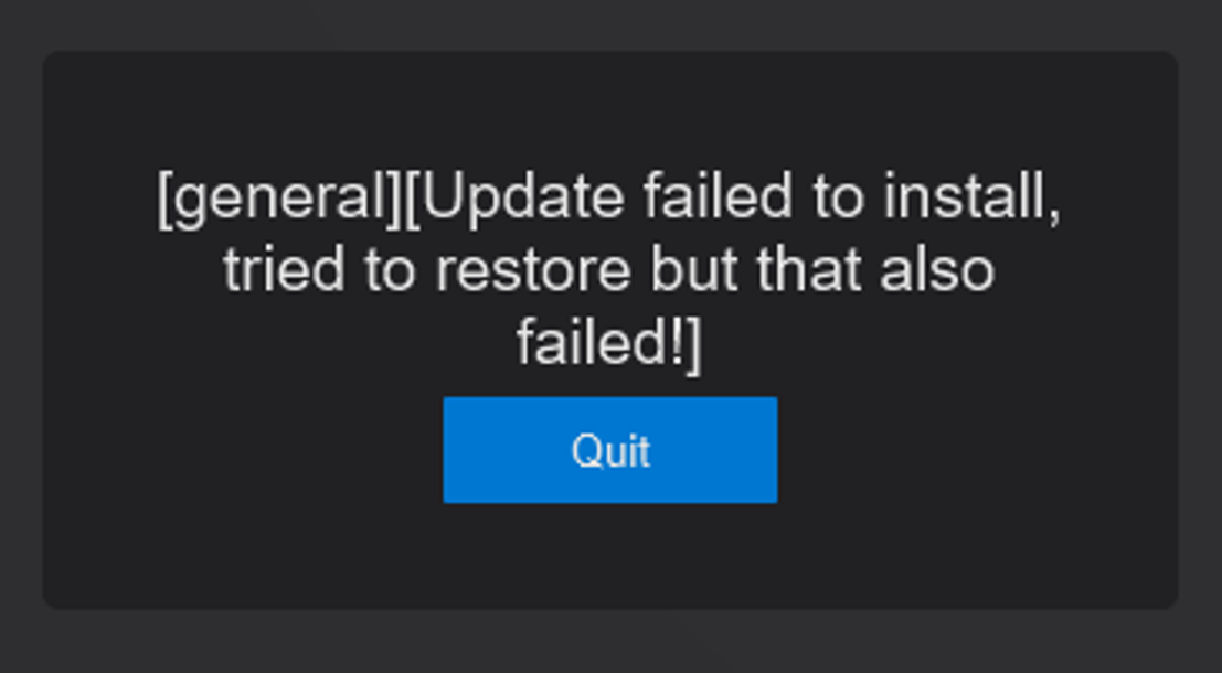 4.1.2 The update installer will go to the end screen, showing a message the update failed, but successfully restored to the previous version