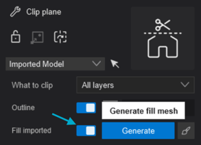 Simply enable the Fill Imported toggle, and Lumion will attempt to generate a mesh where the model is being clipped. If you later move the Clip Plane, clicking on Generate will recreate the mesh.