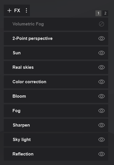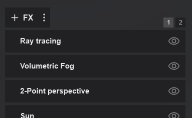 Adding the Ray Tracing Effect will automatically enable the Volumetric Fog Effect when it is in the Effects Stack.