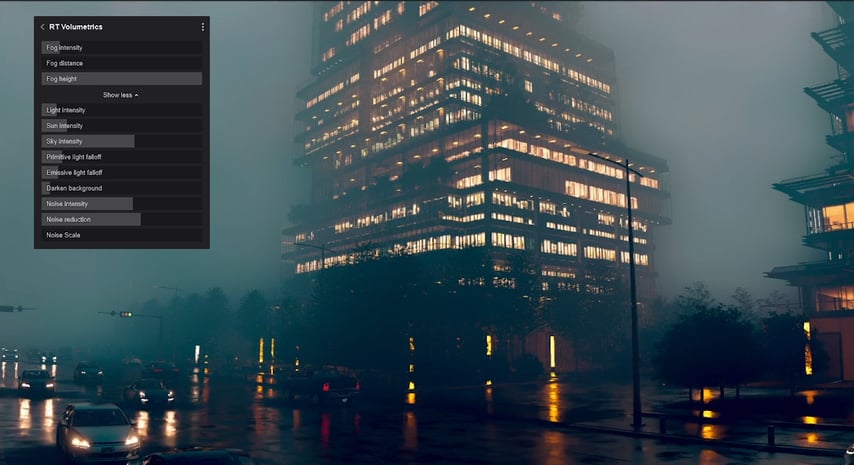 Lumion 2025.0 introduces Ray Traced Volumetrics (Beta). The new Volumetric Fog Effect includes features like full Ray Traced fog, with the sunlight, and lights from emissive surfaces or materials directly affecting the fog for amazing atmospheric results.