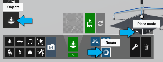 2.1: Click on the Objects Mode button followed by the Place or Move Mode tab and finally the Rotate button: