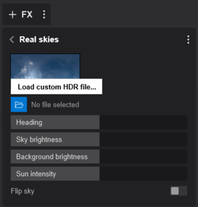 You can also load a photo of your own to replace the sky by clicking on the Load custom HDR file button, and choosing your desired '.HDR' image file: