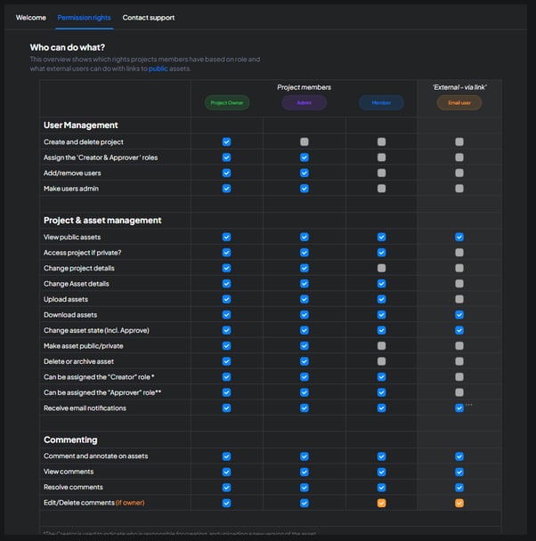 List of users with avatars, names, and roles (Owner, Admin, Editor, Viewer)