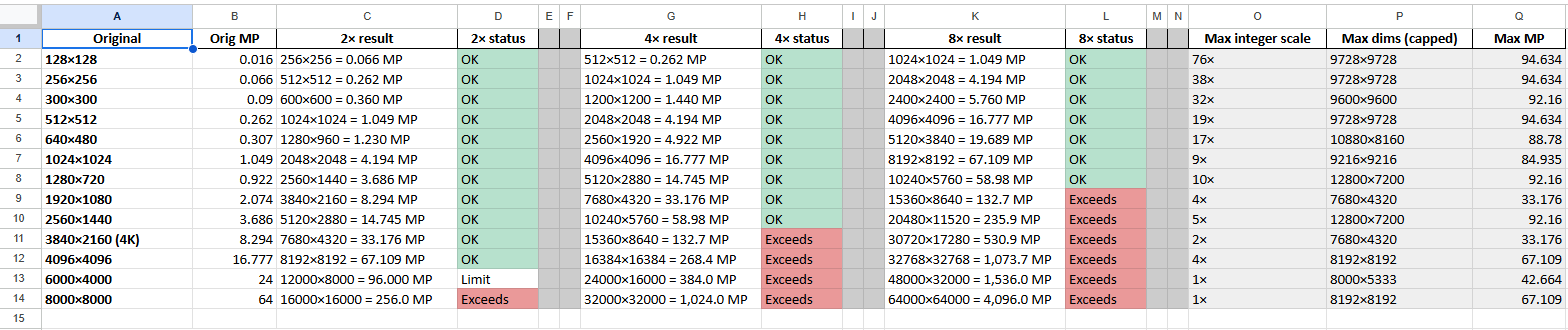 To see what current (original) file sizes can be Upscaled, see the Section: Wanting 2x or more scaling up of the Resolution